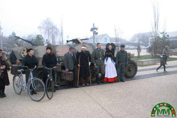 Dés détonnations de pétards imitaient les tirs d'obus auxquels les villageois étaient constamment exposés. S'abriter dans les caves et autres abris de fortune était leur quotidien. Ici, la joie de la Libération de novembre 1944 n'avait été que de courte durée et il avait fallu attendre fin janvier pour être délivré du joug nazi. Dès le 26 novembre, les Allemands étaient revenus. En janvier, ils avaient également évacué Herrlisheim, une partie de Drussenheim et Offendorf. Afin de commémorer cet épisode de l'histoire, un stéle a été inaugurée dimanche 18 janvier 2015 à Gambsheim. L'idée d'organiser cette reconstitution est née en août dernier. Ce jour-là, le père de Florent Dietrich, conseiller municipal, fêtait son 85ème anniversaire. « Toute la conversation tournait autour de cette évacuation. Mon fils a dit "on devrait faire quelque chose pour commémorer cette évacuation". C'est vrai, dans dix ans, on ne sera plus là», raconte Renée, la maman qui avait 9 ans à l'époque et avait fêté son 10e anniversaire au Pays de Bade. Aussitôt, Jean-Paul Zimmer, membre du Théâtre alsacien à Strasbourg et habitant Gambsheim, a adhéré à l'idée et a organisé cette mise en scène.